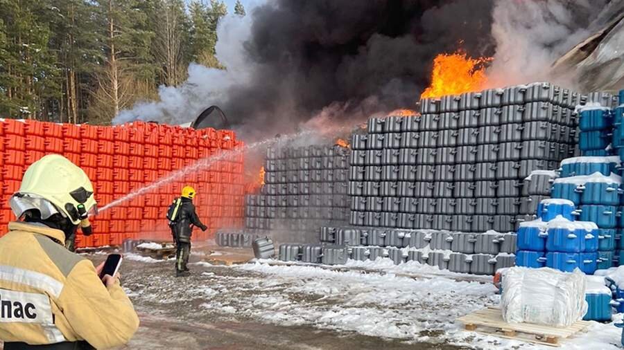 В подмосковном Раменском загорелся цех по производству пластика