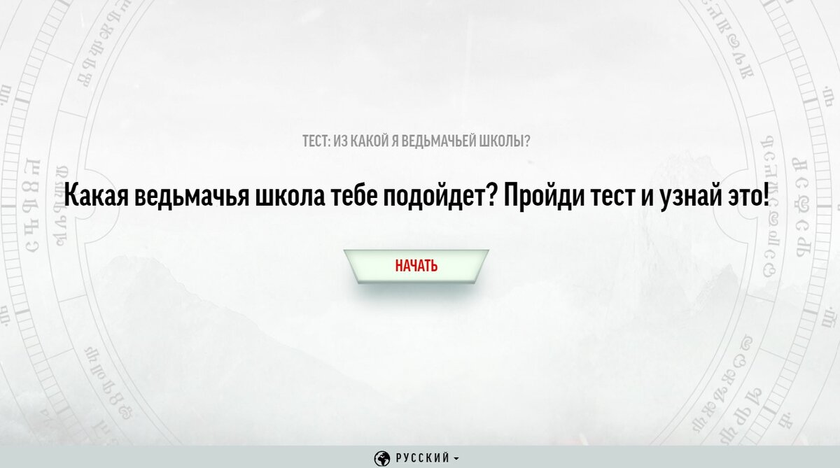 Недавно, на обновлённом сайте создателей серии игр The Witcher появился забавный тест "Из какой я ведьмачьей школы?". В нём участнику предлагается выбрать вариант ответа в серии из десяти вопросов, связанных с ведьмачьими приключениями. После ответа на все вопросы, вы узнаете какая именно школа ведьмаков подошла бы вам больше всего. Сам тест можно пройти здесь. После прохождения теста, вы сможете узнать больше об подходящей вам школе ведьмаков, а также скачать стилизованные обои и рамки для аватара. Во время прохождения теста вы увидите арты с персонажами и местами из компьютерных игр вселенной "Ведьмака". Скорей всего, данный тест был выпущен в честь скорого релиза некстген-патча для "Ведьмака 3", выход которого запланирован 14 декабря. По материалам сайта: thewitcher.com Читайте нас в Вконтакте, Telegram и Instagram. Присоединяйтесь! Наш Портал