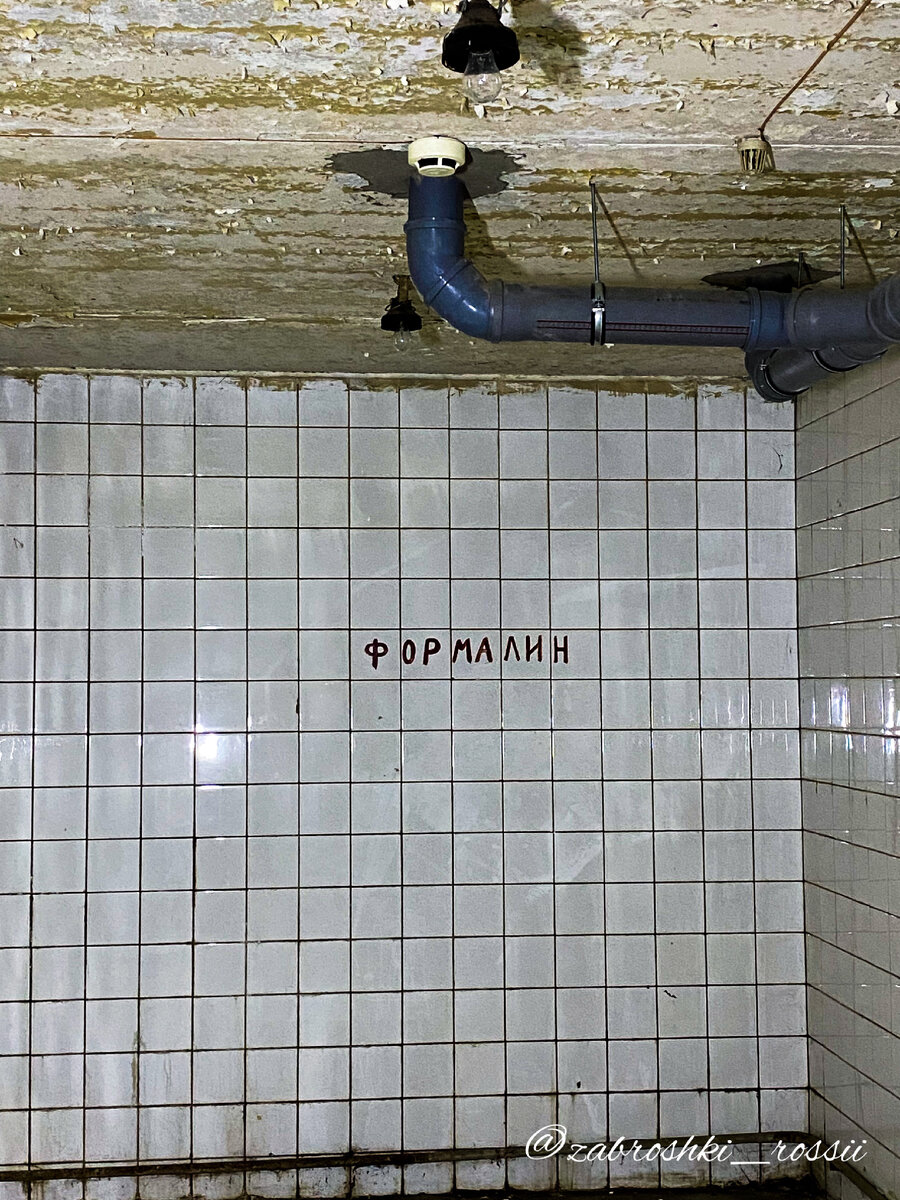 Заброшенный морг. Часть 3. Лабораторные помещения Из секционного зала мы двинули на второй этаж. Там находятся медицинские кабинеты и лаборатории. Самой неожиданной находкой была баночка с человеческим эмбрионом. Ещё удивил один кабинет с большим количеством икон. Вот казалось бы… врачи. С высшим медицинским образованием. А все туда же))) Ну и напоследок мы сходили в подвал. Там в одном из помещений стоят бидоны с человеческими органами в формалине. Но я попросила своего товарища не открывать их. Моя нежная психика не была к этому готова… 😂 📍где-то в Москве Друзья, я рада видеть здесь новых людей! Подписывайтесь на канал!)
