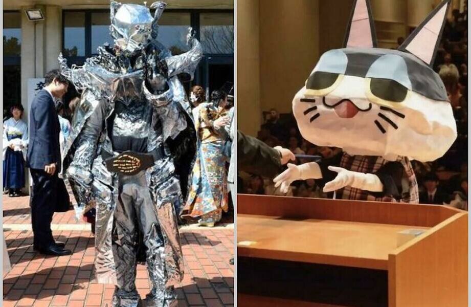Выпускной в вузах обычно проходит торжественно: вручение дипломов, теплые напутствия на будущее, расставание с друзьями, с которыми, возможно, в ближайшие годы вы не увидитесь. Этот грустный и очень важный день обычно все проводят в классических костюмах и коктейльных платьях. Но только не выпускники университета Киото, ведь тут есть немного сумасшедшая традиция — приходить на церемонию не в элегантном костюме, а в каком-нибудь веселом наряде. Так что на сцену за дипломом поднимаются пикачу, герои аниме, зомби, инопланетяне и не только!