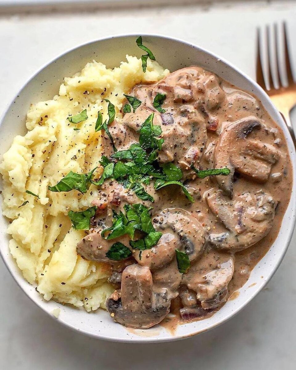 Еще больше вкусных рецептов смотри в моём телеграм канале: 📌 Ингридиенты: ◽️1 лук ◽️2 зубчика чеснока ◽️ 300г. шампиньонов ◽️ 1 ст.л. петрушки или 2 сл.л свежей рубленной ◽️ 1 чайная ложка копч. паприки ◽️ 120 мл овощного бульона ◽️ 1 ч.л с левого соуса ◽️ 4 ст. л. растительного молока ◽️ Чёрный парец, соль Приготовление: ⚪ Обжарить лук, добавить грибы и чеснок, тушить в течении 6 минут ⚪ Добавить петрушку и паприку, тушить 1 минуту ⚪ Залить овощным бульоном, добавить соевый соус, тушить 5-7 минут Приятного аппетита 🤍