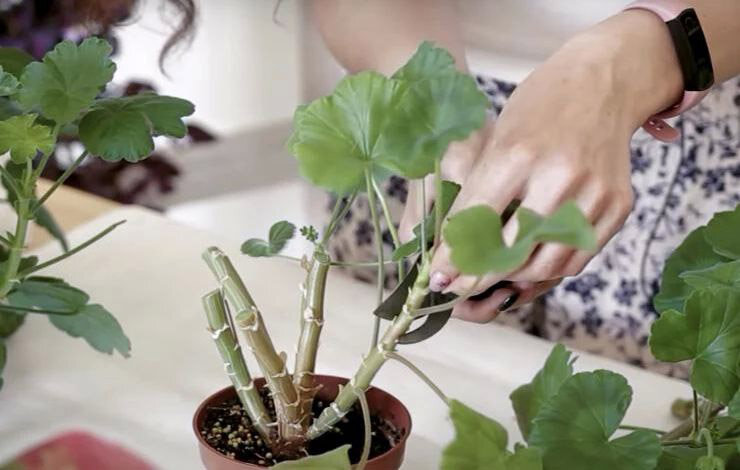 Герань — неприхотливое растение, оно будет красиво расти на любом подоконнике. У нее есть только один, но значительный минус — цветок вытягивается вверх очень быстро, без должного ухода ее внешний вид становится не очень привлекательным: растение превращается в несколько длинных узловатых веток, которые лишены листов. Но герань хорошо переносит обрезку, становится после этой процедуры более пышной. Альтернативы обрезке нет. Герань всегда тянется вверх и без помощи не сможет дать боковых ростков. И только обрезка (или более защитная процедура — прищипывание) помогут сформировать красивую крону и стимулировать появление боковых ростков. Обрезка помогает разбудить спящие в стволе почки, которые нельзя активизировать по-другому. Кроме того, эта процедура способствует формированию в будущем новых бутонов: замечено, что герань, которую прищипывали или обрезали, дает больше соцветий и выглядит намного красивее, чем куст, который только поливали. Как запасной вариант, можно срезать пару молоды
