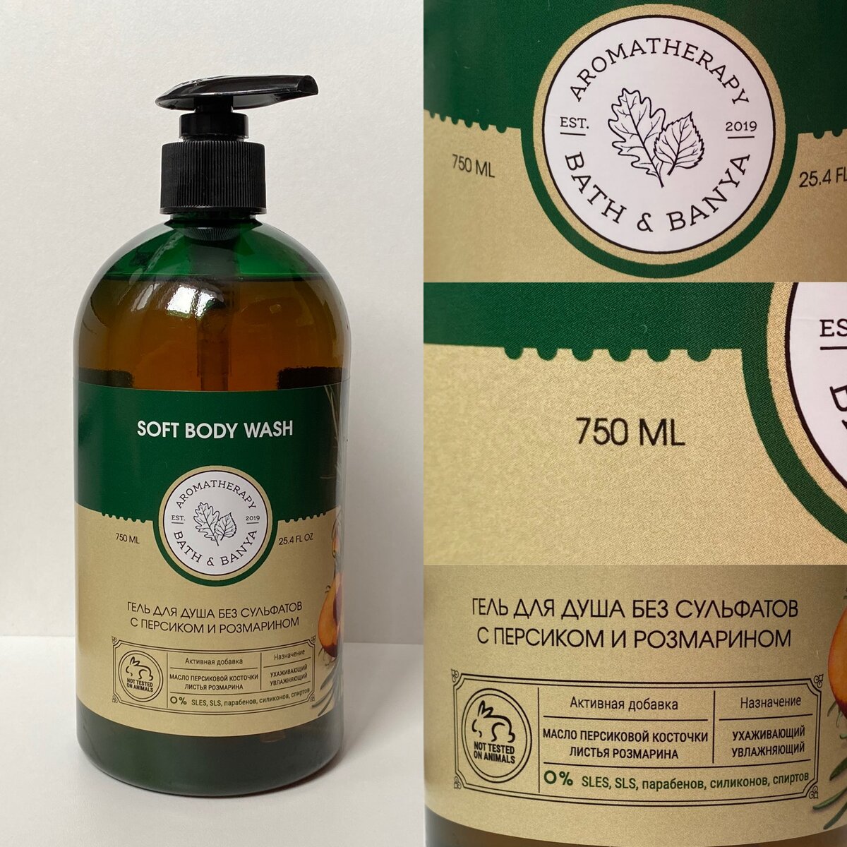 В последнее время у меня просто какая-то мания на гели для душа. Пробую различные гели, сравниваю их между собой, а так же и свои ощущения после душа. В этот раз я хочу рассказать о Геле для душа BATH&BANYA увлажняющий с персиком и розмарином. Данный гель меня зацепил, в первую очередь тем, что он увлажняющий. Не секрет, что моя кожа очень чувствительная и сухая, особенно после душа я мучаюсь от сухости на теле. Именно поэтому я стараюсь выбирать увлажняющий гели. Так же я обратила внимание на то, что данный гель не содержит в себе SLES, SLS, парабенов, силиконов, спирта. Продует не тестируется на животных. Еще одним плюсом стал объём геля - 750 мл. Это достаточно большой объём средства, которого хватит нам с мужем на большой период времени. На обратной стороне геля можно найти более подробную информацию о продукте. Здесь можно прочитать, как именно воздействуют ингредиенты из состава геля на кожу. Основные ингредиенты - масло персика и экстракт листьев розмарина направлены на у