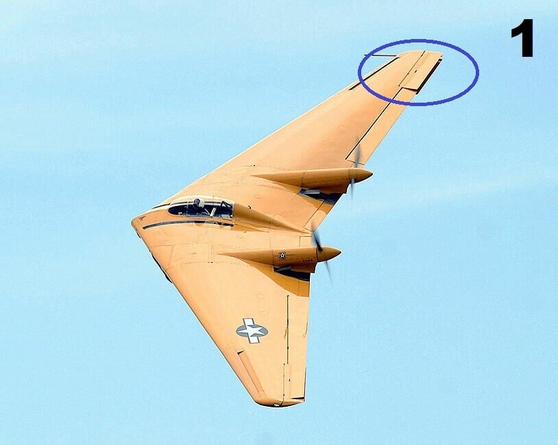 Прежде всего, это аэродинамически не сильно устойчивая схема. Если верхнеплан летит сам и автопилот ему, в общем то, не нужен, то крылом надо постоянно рулить. Оригинальное крыло, вроде немецкого прародителя Horten Ho IX и его внуков NORTHROP N-9M-B, B-2 Spirit, С-70 «Охотник» и т.п. не имеет вертикального оперения. Управление курсом осуществляется воздушными тормозами на концах крыльев, раскрывающимися V-образно и притормаживающими своё крыло (рис. 1-2). Отсутствие вертикального оперения позволяет снижать площадь профиля ЛА во фронтальной и боковых проекциях, чем снижать ЭПР и дальность обнаружения РЛС. Но вот со стороны брюха площадь крыла огромна и знаменитое сбитие F117 под Буджановцами произошло как раз потому, что его заманили на радар так, что он подставил брюхо. После чего его уже легко обнаружила и сбила древняя советская ракета.