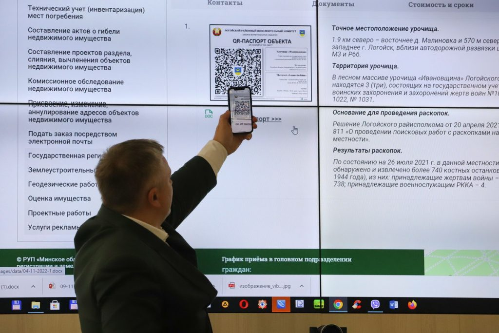 Поводом посетить Минское областное агентство по государственной регистрации и земельному кадастру стала реализация агентством в ноябре нового цифрового решения — создание QR-паспорта урочища «Ивановщина». Это место в Логойском районе, где массово расстреляли жителей в 1941 году. Для выполнения знакового проекта агентством была проведена колоссальная работа по обобщению исторической информации о нем, созданию фото- и видеоматериалов местности, разработка виртуального тура-360 и др. Какие возможности открывает оцифровка и что дает технология QR-паспорта, узнала корреспондент «МП».