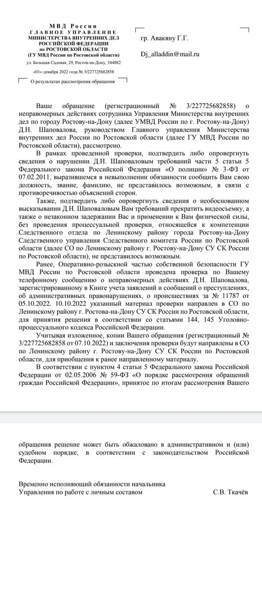 МВД продолжает свои смехотворные программы😁😁😁пришел ответ и проверка показала что подтвердить или опровергнуть невозможно , представился мне Шаповалов или нет. Друзья Вы просто вдумайтесь что происходит и как покрывают этого начальника , а в другой раз меня расстреляют и проверка покажет что я сам в себя стрелял ... В заявлении я указываю название видео и где его смотреть, но видимо при проведении проверки и просмотре видео на самом интересном закончился попкорн и проверяющие ничего не увидели.... Вам не сломать мой дух, радуйтесь вашей маленькой победе, я дойду до Москвы....