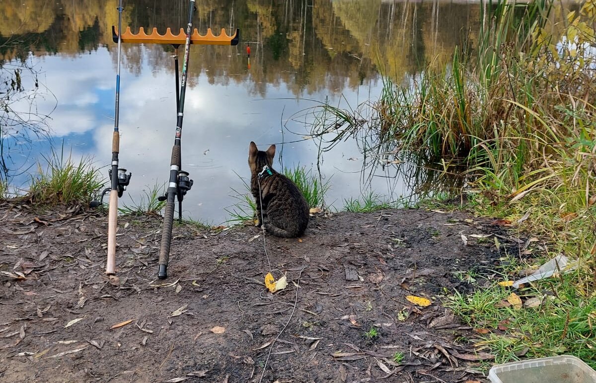 Итог: научили кота работать с поплавком, определять поклëвки по вибрации звоночка и снимать рыбу зубами🐈⬛🐟😁.
