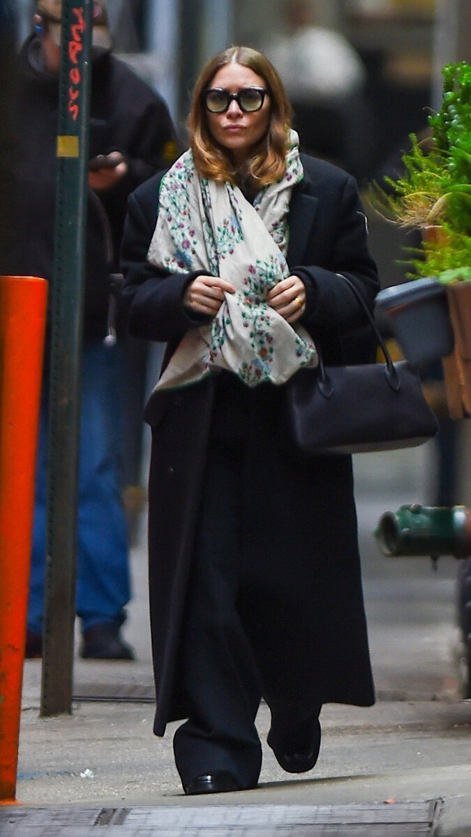 С тех пор, как Мэри-Кейт Олсен вместе с сестрой Эшли создала бренд The Row, от знаменитости не оторвать глаз. Каждый ее выход хочется повторить, и этот — не исключение. Дизайнер любит черный цвет и доказывает, что он не смотрится скучно, грустно и банально. Мэри-Кейт появилась в длинном объемном пальто, широких брюках, топе и лакированных туфлях. Акцент в аутфите она сделала на белом шарфе с цветами и завершила образ аксессуарами: очками и сумкой. Читайте также на нашем сайте: Подписывайтесь на нас в Телеграме, чтобы быть в курсе последних новостей!