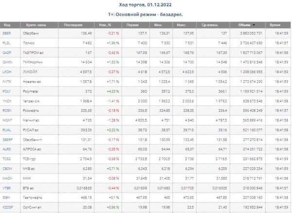 ❄️Итоги первого зимнего дня на Московской бирже 01.12.2022г