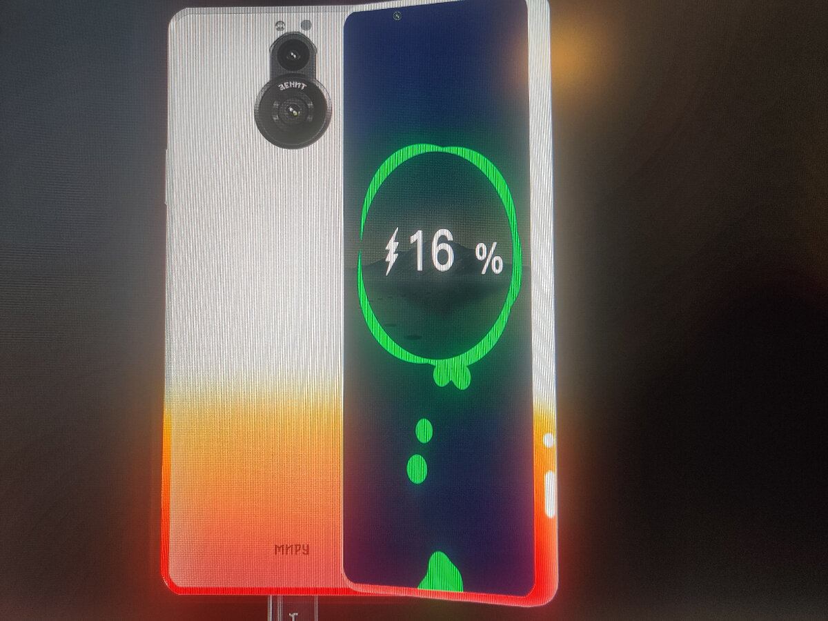 В сети появились фото концепта Российского смартфона. На фото видно что есть градация цвета и скорее всего под корпусом есть диодная подсветка управляемая софтверно. Также мы нашли их в соцсетях вк, телеграмм и boosty под ником Миру и mirutex
