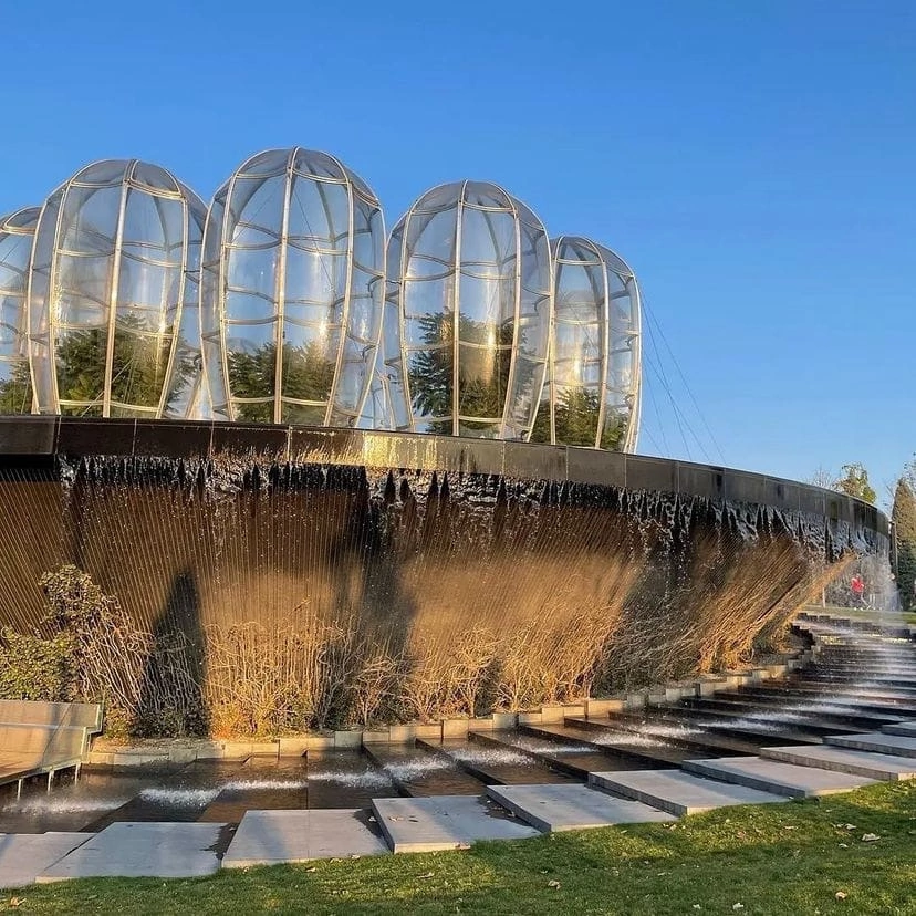 Вы только посмотрите на эту красоту: искусственный круговой водопад с галереей тропических деревьев внутри собственного микроклимата ⛲🌳 По простому 🤗: фонтан Инфинити #паркгалицкого #краснодар