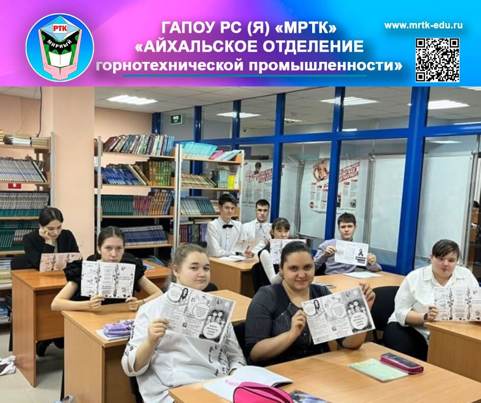 «Айхальское отделение горнотехнической промышленности»: «СПИД - четыре черные буквы». Социальные сети МРТК: подпишись и живи ярко! 1 декабря 2022 г. в ГАПОУ РС (Я) «МРТК» «Айхальское отделение горнотехнической промышленности» прошел ряд мероприятий, посвященных Всемирному Дню борьбы со СПИДом: онлайн-опрос студентов и педагогов «ВИЧ - что вы знаете?», информационный урок «Что такое ВИЧ и СПИД», оформление стенда «Остановись!» Студенты раздали буклеты «Стоп.ВИЧ.СПИД среди своих одногруппников и жителей п. Айхал. Современной молодежи интересно было узнать о возникновении болезни, разницу между ВИЧ и СПИД, пути заражения. Ведь, если предупрежден – значит вооружен! Светлана Маслюкова, зам.зав. по УВР АО ГТП. Пресс-служба ГАПОУ РС (Я) «МРТК» «Айхальское отделение горнотехнической промышленности». #Айхальскоеотделениегорнотехническойпромышленности #АОГТП #Айхал #МРТК #Мирнинскийколледж #Якутия #Мирнинскийрайон #Образование #СПИД Ссылки на публикации: 🔝 Подпишитесь на социальные сети МРТК