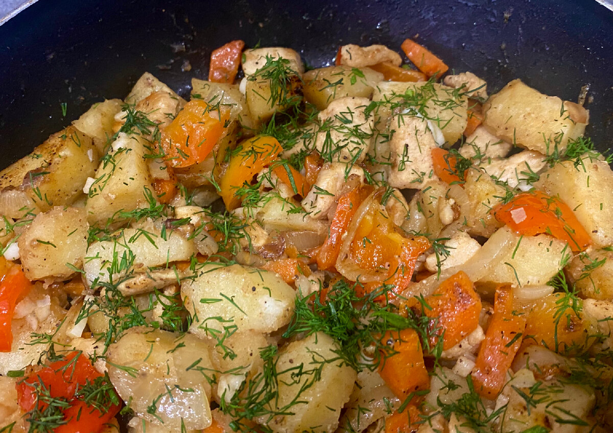 Быстрое куриное жаркое на сковороде. Муж попросил добавку!
