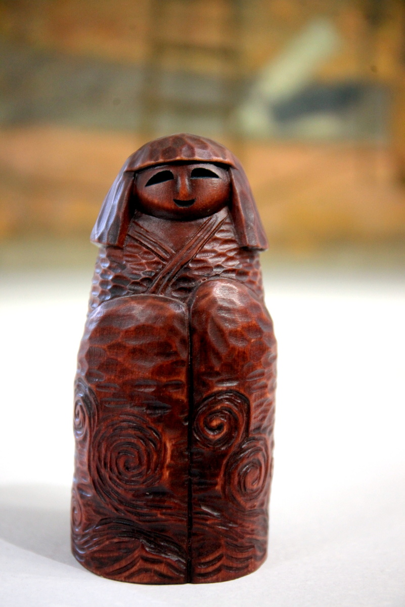 В работе "Восток" угадываются черты японской традиционной куклы кокэси. Это декоративно-прикладное искусство Японии, которому уже больше тысячи лет. Если традиционные форма совсем простые - цилиндрическое тело и круглая голова, покрытые различными узорами, но в послевоенной Японии стало развиваться авторское направление, где художники могли проявить свою фантазию в рамках этого жанра. Работа Руслана, как раз пример, такого творческого переосмысления традиции.