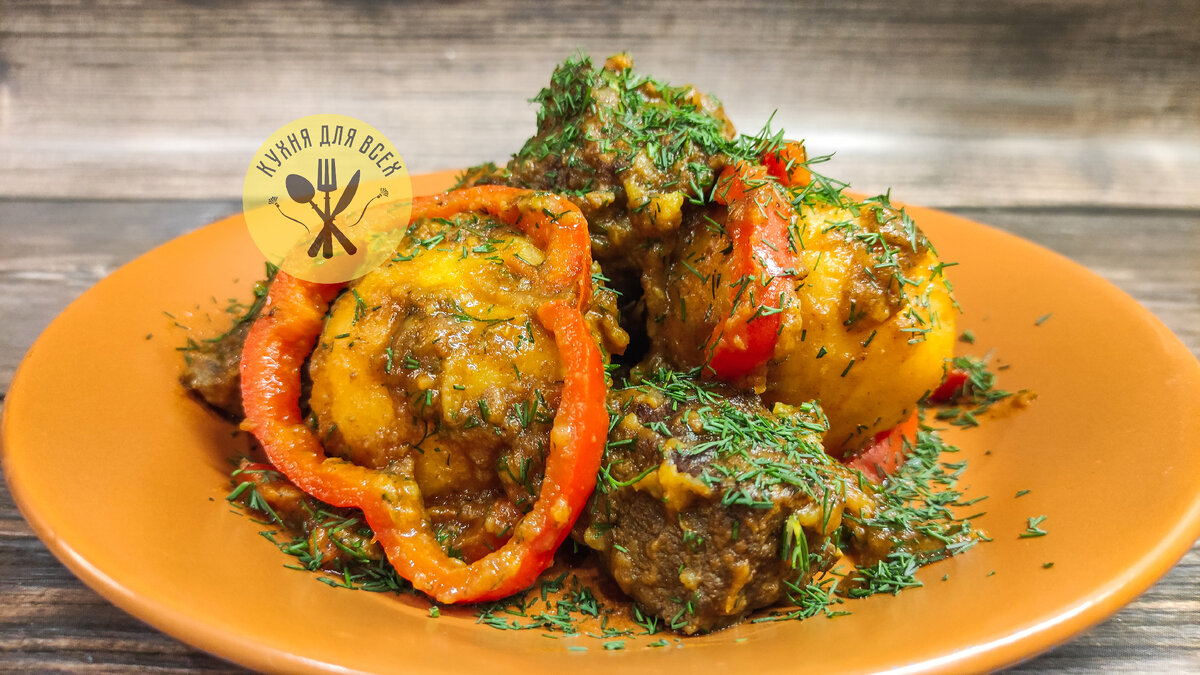 Так просто приготовить это блюдо, но так вкусно оно получается в итоге. Говядина на сковороде с картошкой. Очень интересный и простой ужин или обед. Говядину необходимо нарезать на куски чуть больше среднего размера. Очень хорошо разогреваем сковороду с растительным масло, обжариваем говядину до золотистой румяной корочки со всех сторон. Добавляем к обжаренному мясу репчатый лук нарезанный полукольцами и в течении 3-4 минут обжариваем. В это время с помидор снимаем кожуру и нарезаем на небольшой кубик. Добавляем в сковороду к мясу, также добавляем размолотый в ступке кориандр и сладкую паприку, соль и перец по вкусу. Заливаем горячей водой, хорошо перемешиваем и доводим до кипения. В кипящий бульон погружаем картофель крупными кусками или целиком, если он у вас не очень крупный. Закрываем крышкой и на не сильном кипении тушим примерно 1,5 часа, периодически помешивая и при необходимости добавляем воду. За 15 минут до готовности добавляем нарезанный кружочками сладкий перец. А за пять м