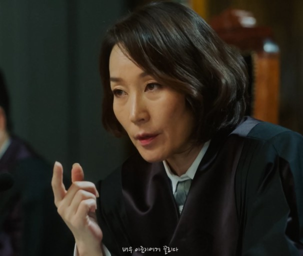 На этом ее и ловит Бон Санпиль. Мне кажется он единственный, кто видит в Ча Мунсук эту психопатическую червоточину. Недаром он говорит ей “Вы выглядите уставшей”, намекая на ее внутреннюю слабость. Судья 30 лет обманывает саму себя и это, всяко, выматывает ей нервы. Санпиль находит эту брешь в броне ее безупречности и начинает целенаправленно в нее бить.