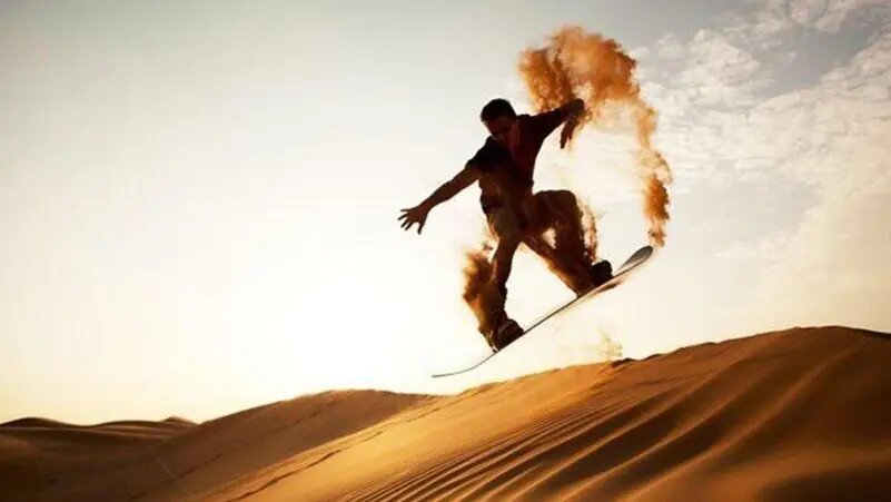 Многие люди любят зиму именно из-за снежных видов спорта и проводят зиму на лыжных курортах. Алжирцы, саудовцы и арабы, чьи страны имеют пустыню на своей территории, нашли свою собственную версию лыжных соревнований посреди пустынь. В десятом ежегодном фестивале в Саудовской Аравии, который проходил под эгидой эмира принца Сауда бин Абдулмохсена, заядлые любители спорта катаются на сандбордах по дюнам саудовской пустыни недалеко от шоссе Хаиль- Джубба. Хотя также можно использовать санки, доски для серфинга, доску от скейтборда или сноуборд. Фестиваль освещает образ жизни бедуинов сейчас и в прошлом. Он призван привлечь людей не только стран Персидского залива но и всех любителей экстремальных видов спорта для развития туризма в регионе. Невероятной красоты пустынные пейзажи, красные дюны высотой более 150 метров, адреналин, который вы испытаете от катания на сандборде сделают ваш отдых наиболее интересным и запоминающим. Пустынная природа превращает пустыню в туристическую достоприм