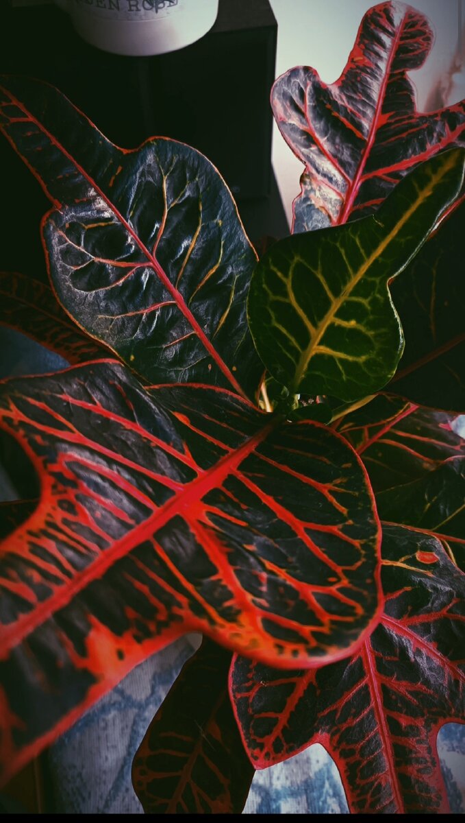 Добрый день уважаемый читатель! Хотелось бы поделится с вами моим опытом ухода и лечения такого прекрасного, удивительного жителя моего дома. Кротон декоративно - лиственное растение, имеет очень яркий, необыкновенный окрас листьев, есть самые различные оттенки и цвета. У меня практически темный кротон с красными прожилками. Когда, мне его подарили, я конечно была очень удивлена его листьям, по моему мнению это самое необычное растение. Я боялась, что листья потеряют свой необычайный окрас в скором времени. Листья могут потерять свой окрас при некоторых условиях: Конечно при колебаниях температуры либо же холодного потока воздуха, кротон может полностью сбросить листья (оскорбится на долго), стоит аккуратно относится к проветриванию помещения, где растение находится в уязвимом месте. Если ваш любимец стоит на подоконнике, а время года уже довольно таки прохладное, могут замерзать корни, поэтому лучше поставить горшок с растением на мягкую ткань или на то, что у вас будет под рукой,