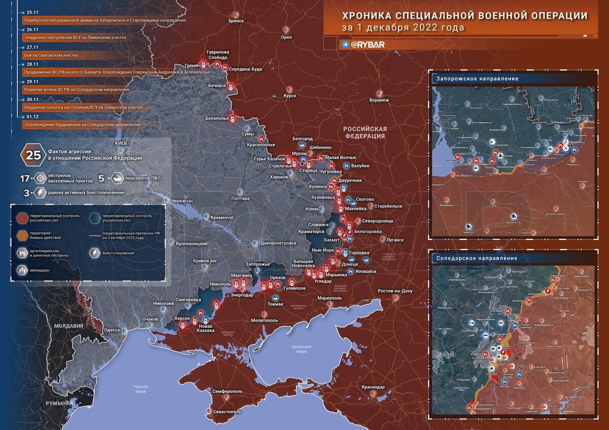 Новые сводки с фронтов СВО на вечер 01 декабря и утро 02 декабря 2022г