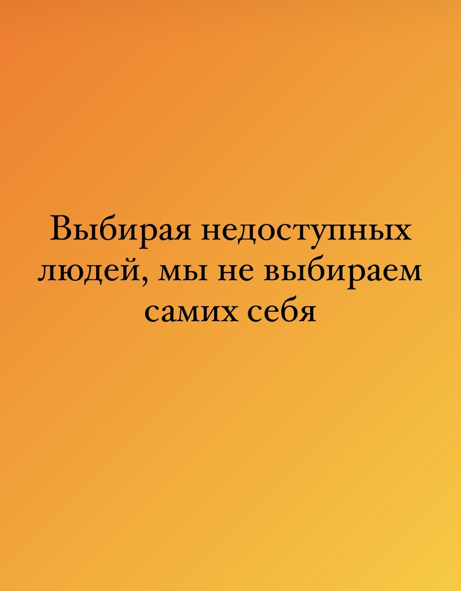 По какой причине Вы выбираете недоступных людей? Тех, кто не хочет быть с Вами? Тех, кто в упор не видит Вас? Тех, кто отстранен и холоден? Вы выбираете недоступных людей, поскольку любовь может ассоциироваться у Вас с желанием ДОКАЗЫВАТЬ! Доказывать, что Вы заслуживаете любви. А недоступные личности как раз дают отличную возможность. А также, любовь в Вашем восприятии может быть приравнена к потребности опекать кого-то в ущерб себе, с отрицанием и игнорированием собственной боли и обид. Все вышеперечисленное тянется за Вами прямиком из самого детства. Вы выбираете недоступных людей, потому что на самом деле боитесь близости и уязвимости. И Вам может казаться безопасным выбирать тех, кто не особо вовлечен в отношения с Вами, кто не бросает вызов и не делает шагов на встречу. Вы выбираете недоступных людей, поскольку можете использовать отношения в качестве побега от самих себя. Вы пытаетесь залатать пустоту и дыры в своей душе, но делаете выбор не на основе своих ценностей - Вы ведь на