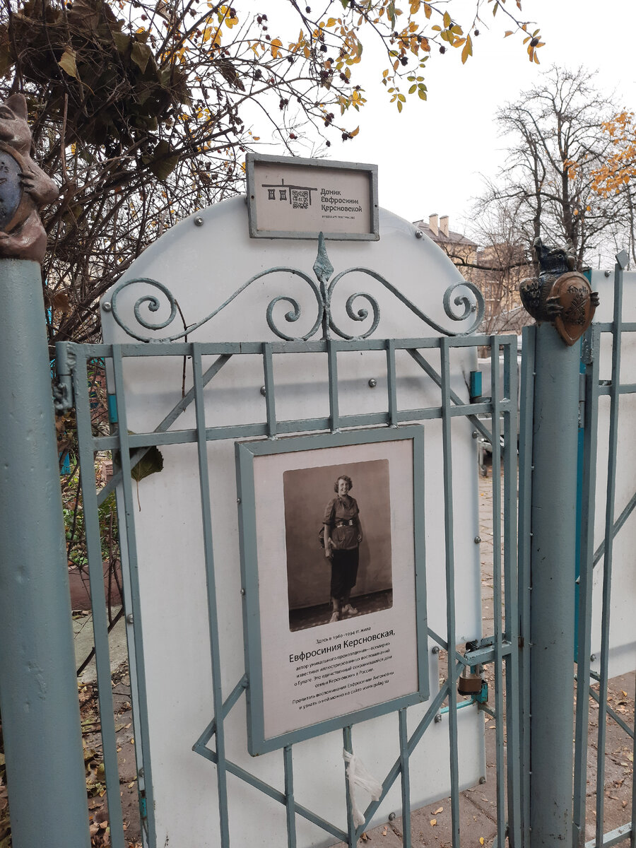 Как же мы хотели туда попасть! Но не получилось. Домик Ефросинии Керсновской находится на улице Нелюбина. На сайте в интернете написано, что можно записаться, чтобы попасть внутрь. Записались. Но ответа так и не получили. Решили пойти и посмотреть хотя бы снаружи (шли с тайной надеждой туда попасть). Но не попали- было закрыто. Мы попытались рассмотреть дом через забор. Смогли увидеть не так много, как хотелось бы. О домике мне написала моя читательница. Она часто в Ессентуках отдыхает, а живёт в Москве. В апреле мы встречались и гуляли сначала в Кисловодске, а потом по Ессентукам. Спасибо Любочка за то, что написала! Честно говоря я ничего до этого времени не знала о Ефросинии Керсновской. А тут заинтересовалась и была поражена историей её жизни. Автор воспоминаний и рисунков о ГУЛАГЕ. Её книга" Сколько стоит человек" , где рассказано о жизни в ссылке и лагерях оказывается известна в мире. После освобождения Ефросинья жила в Ессентуках. Писала свои мемуары и закапывала их в