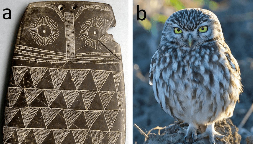 Ученые провели новое исследование и выяснили истинную природу древних изображений и фигур сов. Оказалось, что тысячи лет назад дети с Пиренейского полуострова вырезали их из кусочков сланца. Изначально археологи думали, что мультяшные фигуры были священными предметами, которые представляли божеств и использовались только в ритуалах. Но теперь ученые считают, что они могли быть детскими игрушками или амулетами. Сотрудники Испанского национального исследовательского совета изучили 100 из 4 000 выгравированных сланцевых пластин с совами, которые археологи много лет собирали в местах захоронений, разбросанных по всему полуострову. Все резные фигурки датируются медным веком (3500–2750 гг. до н. э.). Копия (слева) резной каменной совы с двумя вставленными вверху перьями рядом с фотографией (справа) ушастой совы (Asio otus). Изображение предоставлено Хуаном Дж. Негро Их оценивали по тому, насколько они были проработаны: как изображены глаза, перья, клюв, крылья. «Мультяшность» и простота рису