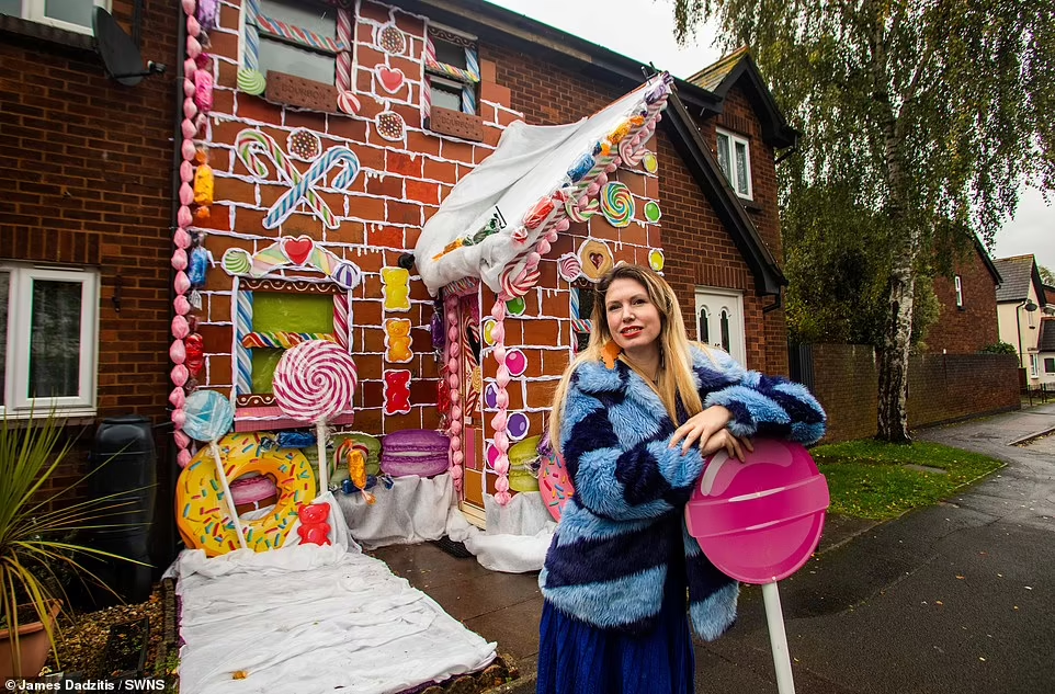 Девушка сделала из своего дома пряничный домик из пакетов для молока и остатков воздушных шаров