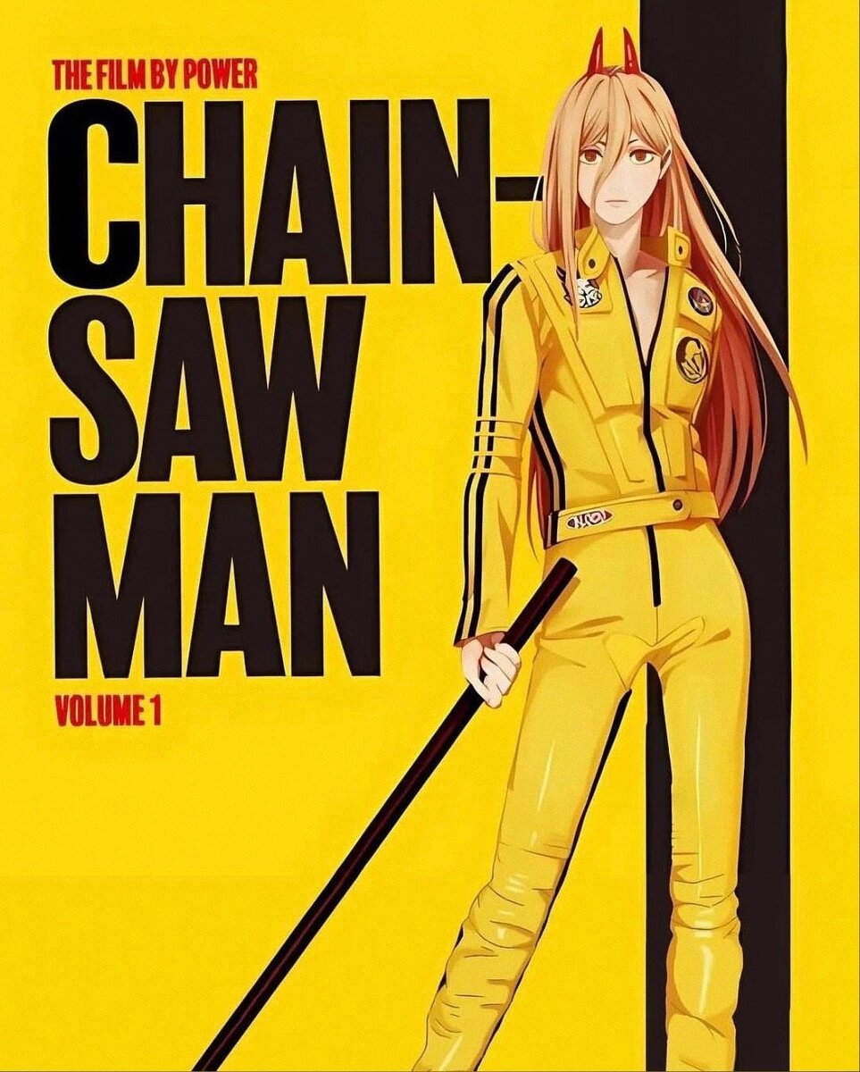 Превью постеров к дисковому изданию «Chainsaw Man» (Человек-Бензопила). Отсылочки по-порядку: - «Убить Билла» Квентина Тарантино 2003 г. - «Заводной апельсин» Стэнли Кубрика 1971 г. - «Сияние» Стэнли Кубрика 1980 г. - «Парк Юрского периода» Стивена Спилберга 1993 г.