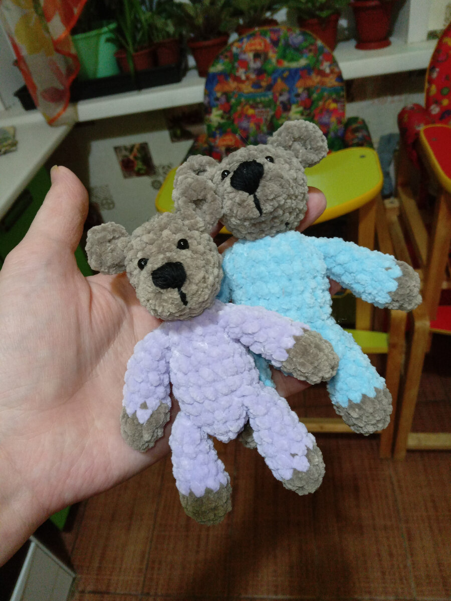 Захотелось мне связать двух одинаковых маленьких мишек, но в разных пижамках. В итоге один получился толстым, другой худым и напомнили мне двойняшек. Есть у меня небольшой бзик - не люблю вязать по схемам и считать каждую петлю, поэтому результат бывает разным, как и вышло с мишками. Может это и помешает мне достичь больших успехов на вязальном поприще, я за творчество и разнообразие, копировать чужую идею точь-в-точь мне кажется скучным. На Дзене подписалась на канал одной вязальщицы, она тоже не любит схем и вяжет интуитивно. Еще образовался один тощий зайка, но это я специально старалась связать его потоньше. От двойняшек игрушечных перейду к размышлениям о человеческих) Так вот, наблюдать за двойняшками очень интересно. От них, конечно, никто и не ждет полного сходства, тем более от разнополых. Но теперь я точно знаю, что у людей может быть разный обмен веществ, который в конечном итоге и влияет на внешний вид. Довольно часто встречаю в интернете такие высказывания: "А ты перестань