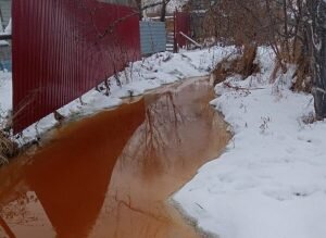 Инспектор взял пробу реки Coca-Cola в Дзержинском районе Новосибирска