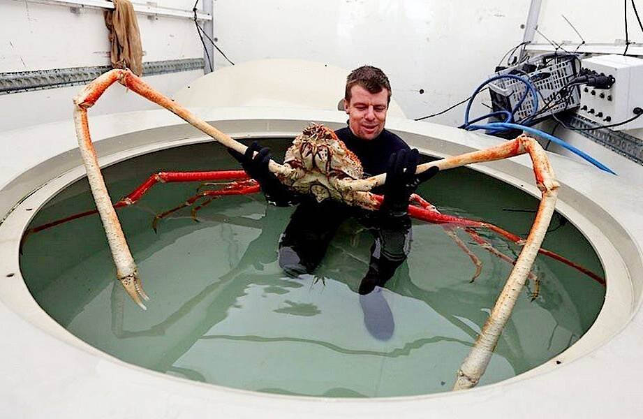 Японский краб-паук распространён в Тихом океане у побережья Японии на глубине от 50 до 300 метров. Японский краб-паук-вид ракообразных из инфраотряда крабов. Самый крупный представитель членистоногих: Крупные особи достигают 45 см длины карапакса(У членистоногих-часть панциря - сплошной щиток, прикрывающий тело сверху. ) и 3 метров в размахе первой пары ног. Масса до 20 кг. Длина тела до 80 см, с ногами до 6 метров. Питается моллюсками и остатками животных. Живёт предпочтительно до 100 лет.