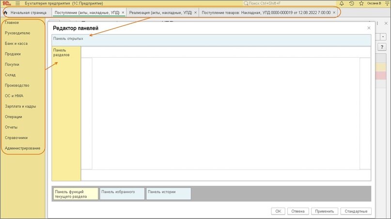 Как в "1С:Бухгалтерии 8" (ред. 3.0) настроить расположение панелей?