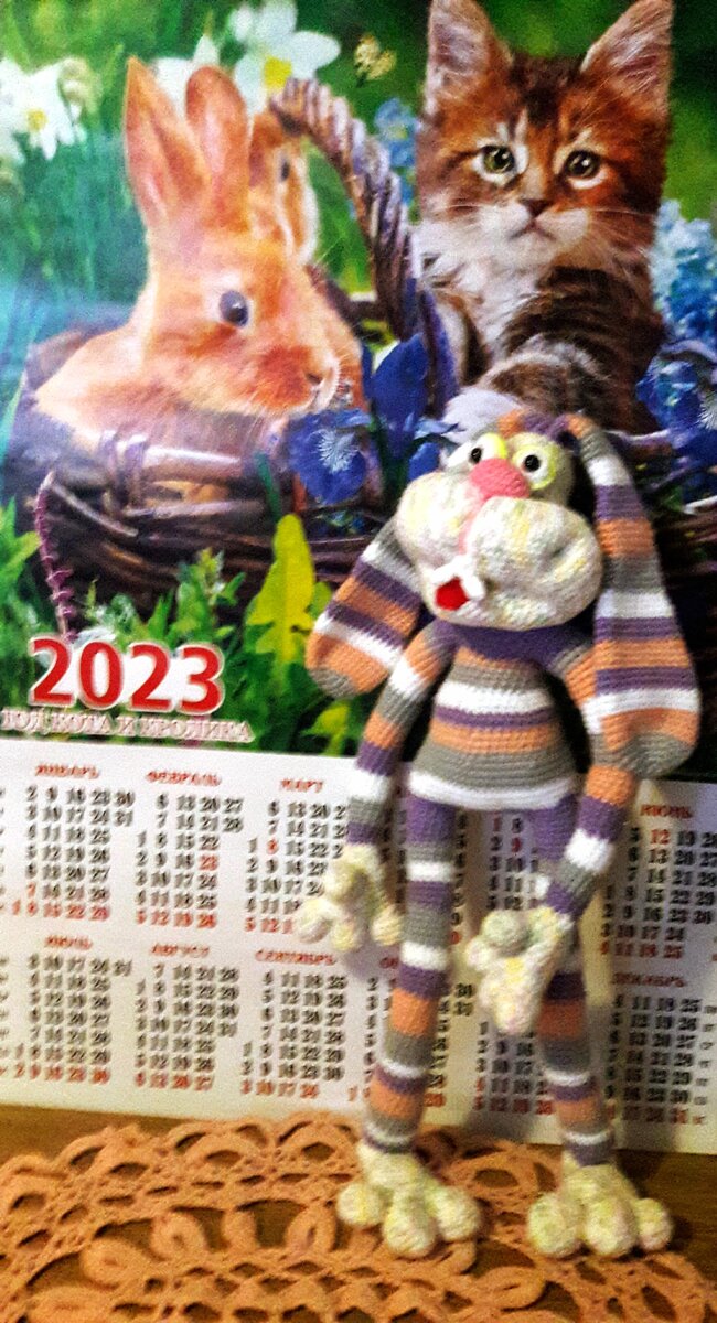 - Наконец я закончила смешного зайца , брала из интернета,бесплатный мастер класс.Там этот зайчишка под именем Рогалик.Хочу, что бы мой зайка не потерялся, даю ему приставку Донецкий Рогалик.