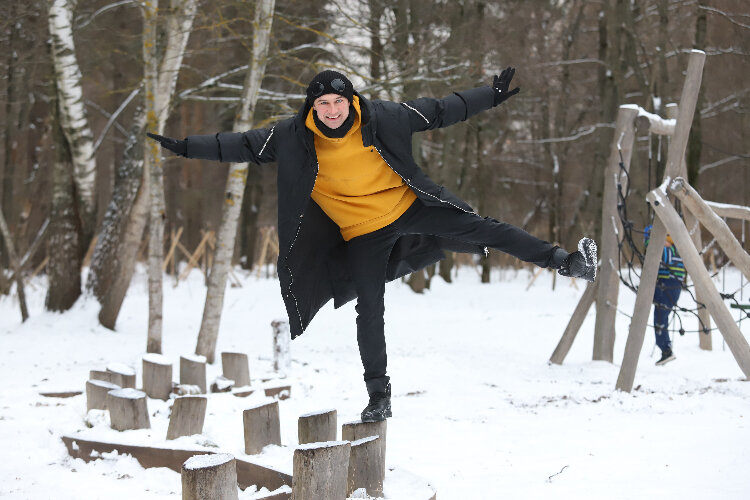 – Район Тропарёво-Никулино – замечательный, зелёный, ухоженный, с огромным лесным массивом – Тропарёвским заказником. Здесь природа сохранилась в своём первозданном виде, при том что парк благоустроен, – рассказывает Андрей, пока Люси исследует новые тропинки. – Всего здесь в меру: удобные дорожки, освещение, спортивные площадки. Но есть и укромные уголки для размышлений, творческого поиска, отдыха. Я прихожу сюда, чтобы побыть наедине с самим собой. У меня и двор прекрасный, он объединяет несколько домов, в том числе и дом 125 на проспекте Вернадского, где расположен театр. В далёкие 70-е в одном из подъездов этого дома проходили съёмки культовой комедии Эльдара Рязанова «Ирония судьбы, или С лёгким паром!». Одним словом, пространство вокруг наполнено культурными ассоциациями. Через дорогу церковь Архангела Михаила, и она тоже попала в кадр фильма. Тропарёво, кстати, ещё и спортивный район – много площадок с тренажёрами.