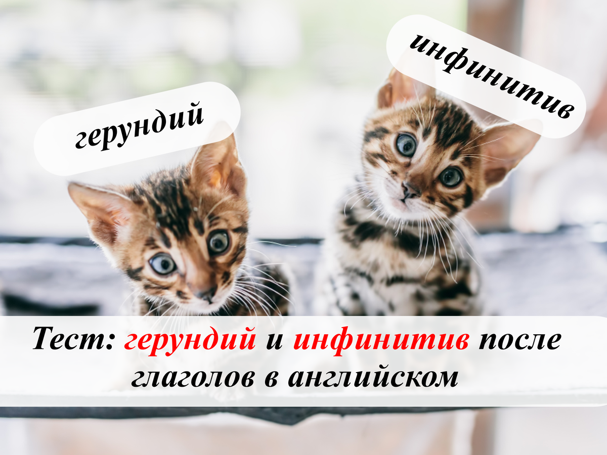 Здравствуйте, уважаемые читатели! На связи снова English Cats! Сегодня мы подготовили тест, который поможет проверить ваши знания, связанные с использованием герундия и инфинитива после глаголов. Например: Сразу оговоримся, что мы выбрали глаголы, которые используются либо с герундием, любо с инфинитивом. Глаголов по типу "love" или "remember", с которыми можно использовать и герундий и инфинитив в тесте нет. Тест состоит из 15 вопросов, в каждом из которых может быть от 1 до 4 правильных вариантов ответа. Будьте предельно внимательны, ведь мы постарались вас запутать! Кроме того, система устроена таким образом, что, например, при выборе 2 правильных ответов из 3, засчитано будет 0 баллов (это не наша прихоть). А теперь не будем вас долго задерживать! Поехали! Надеемся, что вас порадовал ваш результат! Спасибо, что были с нами! Не забывайте ставить лайки и подписываться на канал! Советуем вам также пройти тесты из нашей подборки, чтобы проверить свои знания и по другим темам: #english