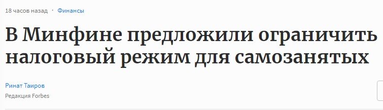 Замглавы департамента налоговой и таможенной политики Минфина Виталий Прокаев во время круглого стола в Совете Федерации выступил с инициативой ограничить налоговый режим для самозанятых. По мнению чиновника, самозанятые - это физлица, оказывающие услуги физлицам, и они не должны конкурировать с налоговыми режимами, применяемыми для представителей среднего и малого бизнеса, например, патентной системой и УСН. "Когда мы вводили этот налог, мы предполагали, что это услуги физлица физлицу", - заявил госп. Прокаев. - "По мнению нашего департамента, режим налога на профессиональный доход, наверное, все-таки должен быть ограничен в применении." Напомню, что упрощенный налоговый режим для самозанятых НПД предполагает уплату 4% налога на доходы, полученные от физлиц, и 6% налога на доходы, полученные от юрлиц. При введении данного режима власти заверили, что данные ставки не будут изменяться в течение первых 10 лет его действия, то есть, до 31 декабря 2028 года, этот момент закреплен законодат