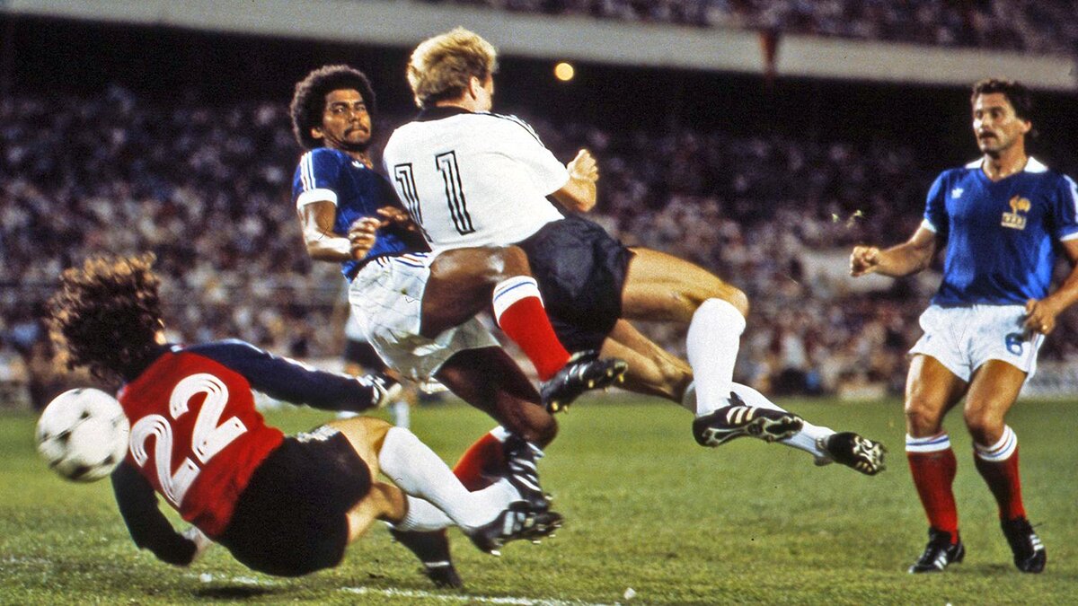 В серии пенальти, которая пробивалась впервые в истории чемпионатов мира, тоже всё поначалу складывалось в пользу Франции: она повела +1, а потом допустила два промаха. Этот же матч знаменит эпизодом, в котором голкипер немцев Харальд Шумахер нанёс жестокую травму Патрику Баттистону, влетев в него всей своей массой. Сейчас бы он был бы минимум удалён за излишнюю агрессию и надолго диквалифицирован. А по правилам 40-летней давности даже не был предупреждён. Баттистон ведь успел протолкнуть мяч в сторону ворот соперника, а то, что он через секунду оказался на газоне с сотрясением мозга и выбитыми зубами, никого не интересовало. Тогда на игроках еще не зарабатывали миллионы и их здоровье не берегли.