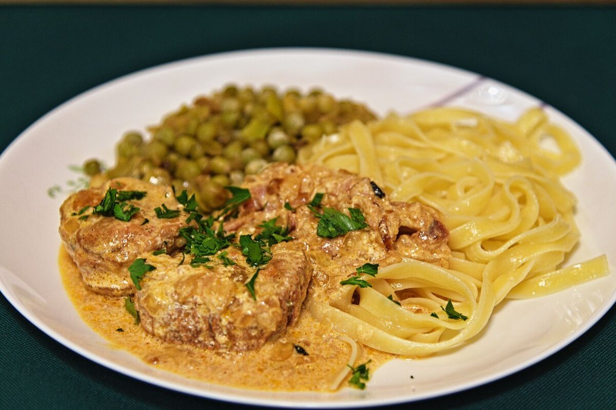 Свиная вырезка в сливочном соусе с ягодами можжевельника