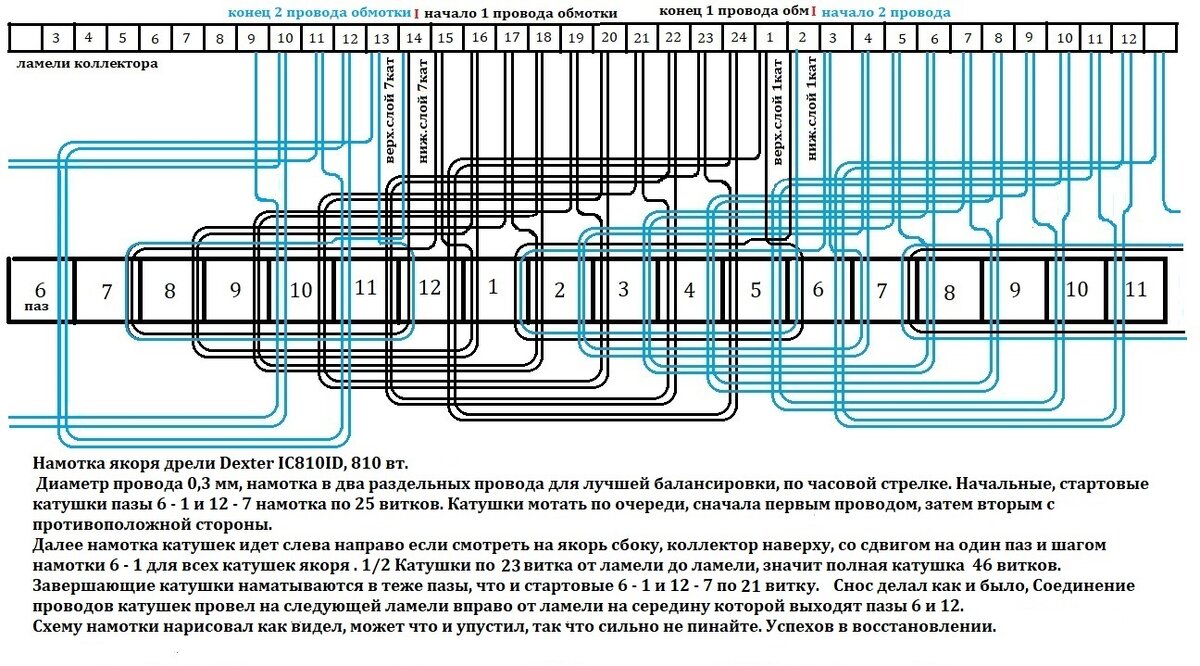 Собрал, все работает, сопротивление по катушкам одинаковое более - менее, не искрит в обе стороны. Под нагрузкой попробую когда будет работа. Важное: Прежде чем перематывать проверьте сопротивление на проводах подходящих к ламели.