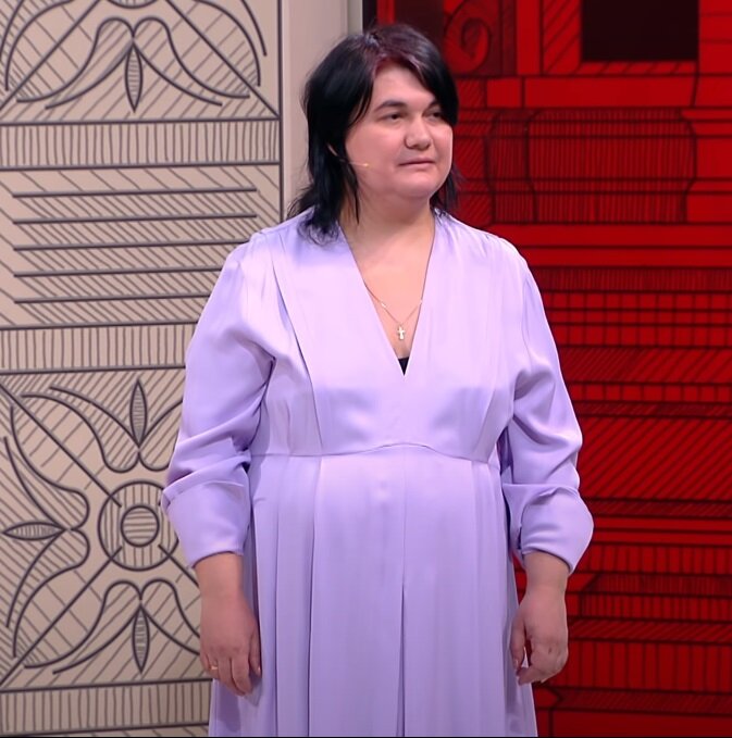 Платья и жакеты или платья-блейзеры выбрали стилисты программы «Модный приговор», чтобы преобразить женщину с полной фигурой «яблоко». Но для гармоничного стиля недостаточно просто спрятать живот, не обтягивая его одеждой. Идеалом фигуры считается силуэт «песочные часы» с выраженной талией, и именно для него выполняется массовый пошив одежды. Фигура «яблоко», имеющая тяжёлую среднюю часть тела с животом, ей прямо противоположна, поэтому женщинам с такими формами труднее и подобрать одежду и выглядеть гармонично даже в том, что им подходит. Женщин с полной фигурой многим хочется нарядить в оверсайз. Только мешковатая одежда, которая прячет всё, часто делает образ бесформенным, ещё больше укрупняя силуэт. Некоторые стилисты пытаются играть с формами, облекая фигуру в наряды с асимметричным дизайном, перераспределяя акценты, но не всегда удачно. Мария (38 лет) имеет маленький рост (160 см), лишний вес, круглое лицо. С такими параметрами трудно подобрать одежду, которая бы сидела красив