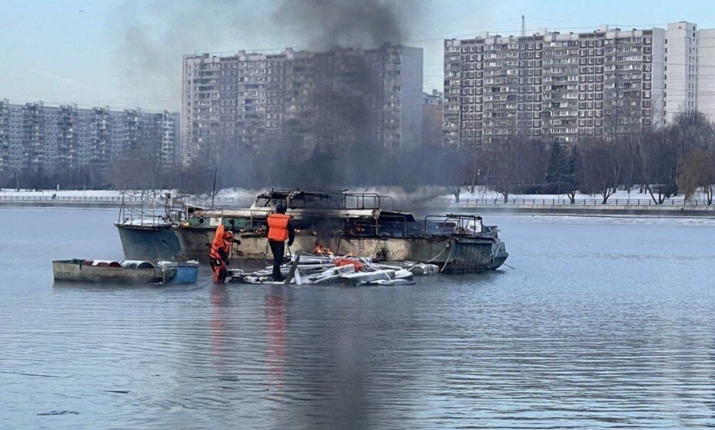 Спасателям удалось спасти женщину с полыхающего судна в Москве