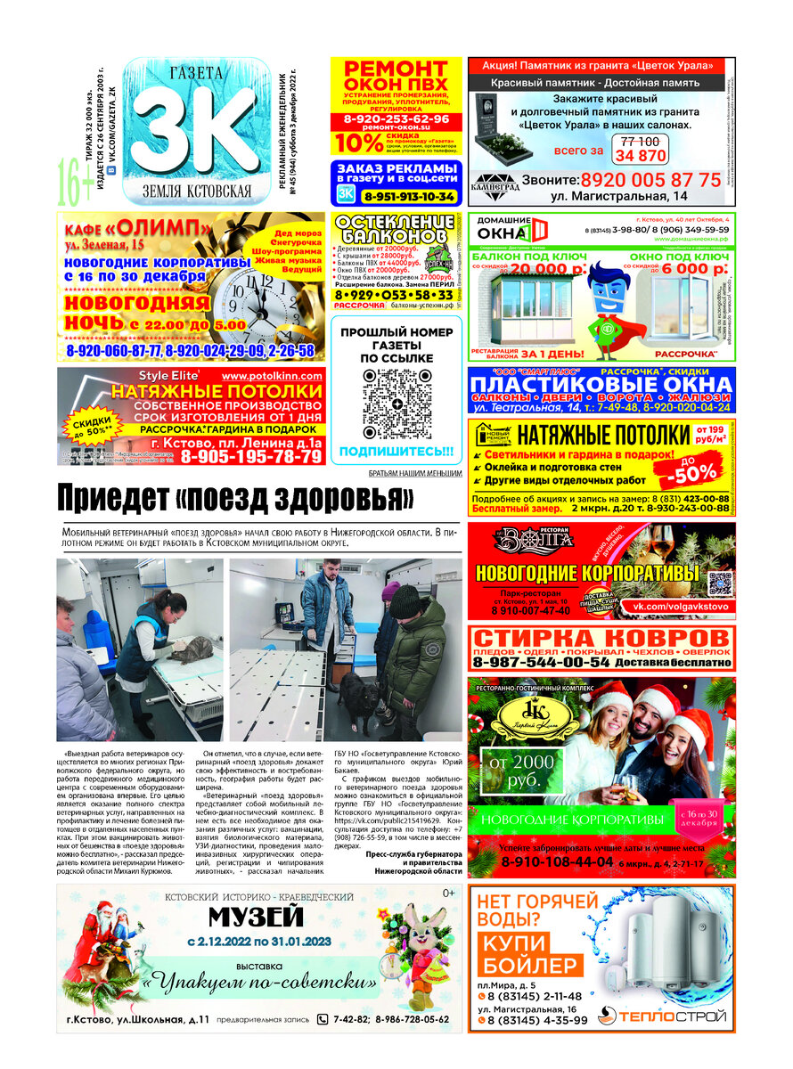 Газета "ЗЕМЛЯ КСТОВСКАЯ"№ 45 (944) от 03.12.2022г.