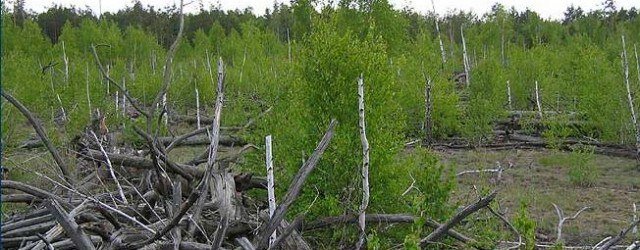 Зона среднего повреждения соснового леса. Для данной зоны характерным было поражение в основном молодых побегов, а хвоя желтела только на отдельных участках веток. Отмечались также небольшие морфологические отклонения в росте сосны, но эти растения сохранили свою жизнеспособность. Поглощенная доза – 400-500 рад, мощность экспозиционной дозы – 50-200 мР/час. Площадь третьей зоны составляла 43,3 тысяч гектар, в том числе сосновых лесов – 11,9 тысяч гектар.