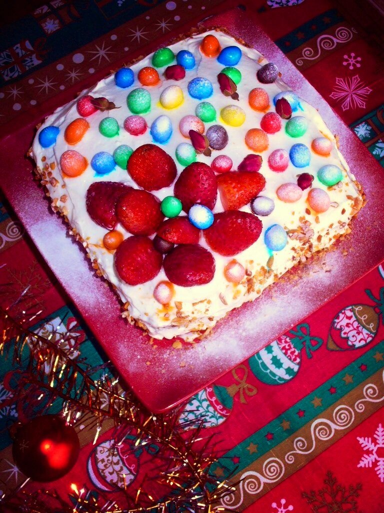 Торт " Новогоднее конфетти". Из всевозможного кулинарного изобилия, в моей семье больше всего любят простые домашние тортики. Готовить их легко, набор продуктов прост и доступен, а результат получается очень достойным! *5 куриных яиц, 3/4 стакана сахара, щепотка соли, 2 столовых ложки какао, пакетик ванильного сахара, 3/4 стакана пшеничной муки в/с, Отделить белки от желтков. Белки хорошо охладить. Взбить желтки и сахар, ванильный сахар, до побеления и увеличения объема. Добавить какао и продолжать взбивать. Муку просеять и постепенно, маленькими порциями, ввести в яичную массу с какао, продолжая взбивать, на маленьких оборотах. Охлажденные белки, щепотку соли взбить на небольших оборотах, затем увеличить скорость и взбить белки до устойчивых пиков. Аккуратно, круговыми движениями, силиконовой лопаткой, вмешать в тесто взбитые белки. Тесто должно быть лёгким, воздушным. Форму смазать сливочным маслом. Вылить тесто в форму и выпекать при температуре 180 градусов,в теч