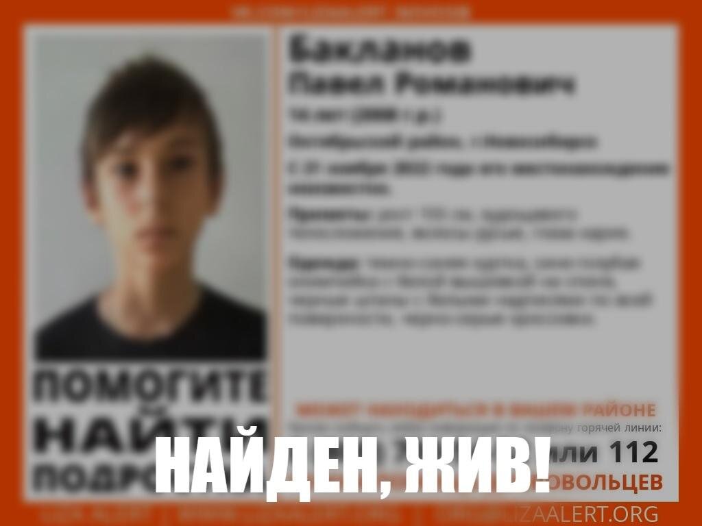 Поиски пропавшего 14-летнего новосибирца шли почти две недели. В Новосибирске живым нашли 14-летнего Павла Б., который с 21 ноября числился без вести пропавшим. Об этом сообщили волонтёры в поисково-спасательном отряде «Лиза Алерт Новосибирск». Пропавшего мальчика нашли сотрудники полиции. С подростком всё в порядке, он не пострадал. Павел пропал после школьных занятий 21 ноября и не вернулся из школы домой. Поиски шли почти две недели. В операции участвовали добровольцы и сообщество по поиску пропавших людей «Лизы Алерт». Известно, что парень уходит из дома не впервые. Ранее школьник как минимум дважды самостоятельно покидал дом и возвращался спустя несколько дней. Напомним, ранее в Новосибирске пропал 12-летний мальчик.