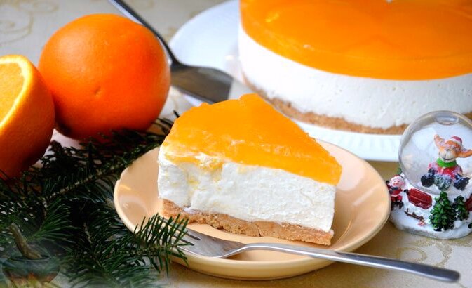 Творожный чизкейк с апельсиновым желе (без выпечки)