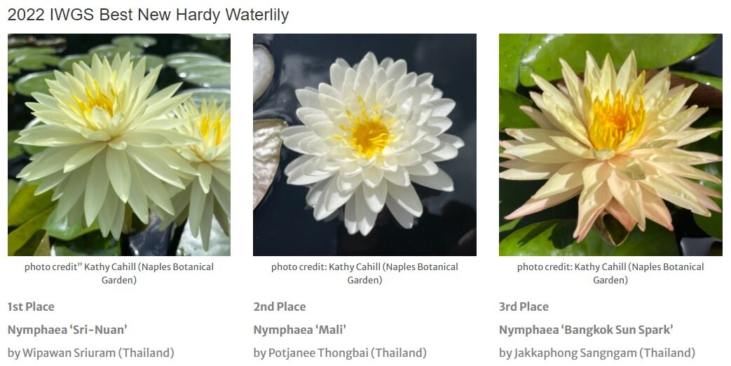 Дорогие друзья, коллеги пришли итоги международного конкурса нимфей IWGS (Международное общество любителей нимфей и прудоводства) 2022 года. Результаты в четырёх номинациях нимфей: классические зимостойкие, ISG зимостойкие, дневные тропические и ISG тропические (фото выше). Мои выводы по номинациям следующие: