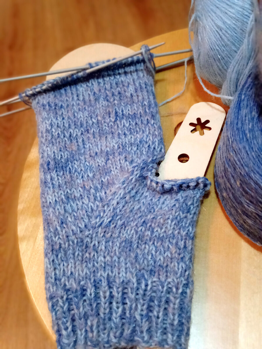 Взялась я тут недавно вязать варежки тёплые и такой у меня микс пряжи приятный получился, что даже не захотелось никаких узоров вязать. Вяжу простые надёжные варежки лицевой гладью.