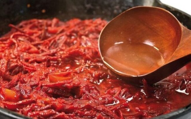 Чтобы борщ был борщом,а не свекольным супом: что мы можем сделать для пассеровки, чтобы борщ был рубиновым, вкусным и красивым. Мудрые хозяйки так делают - простые и полезные советы, нехитрые хитрости и маленькие тонкости. Многие их знают, многие знают гораздо больше - но так пассеровку приготовить стоит. Хитрость №1. Пассеровка любит не пассероваться, а тушиться. Хотя бы в конце "Зажарка" не любит жарится :) Именно так: не классический метод пассерования - роскошный рубиновый ароматный борщ требует иного подхода: борщ - не суп. Поэтому нашу пассеровку-зажарку нужно протушить - в полном понимании этого слова. Можно поэкспериментировать и сравнить: это две большие разницы, два разных борща. Что делать. Как и положено, пассеровать отдельно лук с морковью, отдельно свеклу (с маленькой хитростью, которая ниже). Соединить, добавить немного бульона, накрыть крышкой - и протомить, именно протомить на небольшом огне до 10 минут - зависит от количества. Свекла отдаст насыщенной рубиновый цвет,