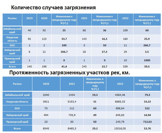 В природоохранные ведомства по поводу загрязнения водных объектов обращаются и общественные экологические инспекторы, и простые граждане. В этом году количество таких жалоб стало больше, а наказаний для недобросовестных золотарей – в разы меньше. Юрий Гафаров, координатор проектов по сохранению пресноводных экосистем Амурского филиала фонда дикой природы, приводит для сравнения такие цифры: в 2021 году было 300 обращений в уполномоченные органы, проведено 73 проверки, возбуждено 37 административных дел, назначено 10 миллионов рублей штрафов; на 300 миллионов предъявлено исков за ущерб окружающей среде; в 2022 году обращений уже 500, а проверок всего 44, административных дел – 21, штрафов – на четыре миллиона рублей, исков – на 170 миллионов.